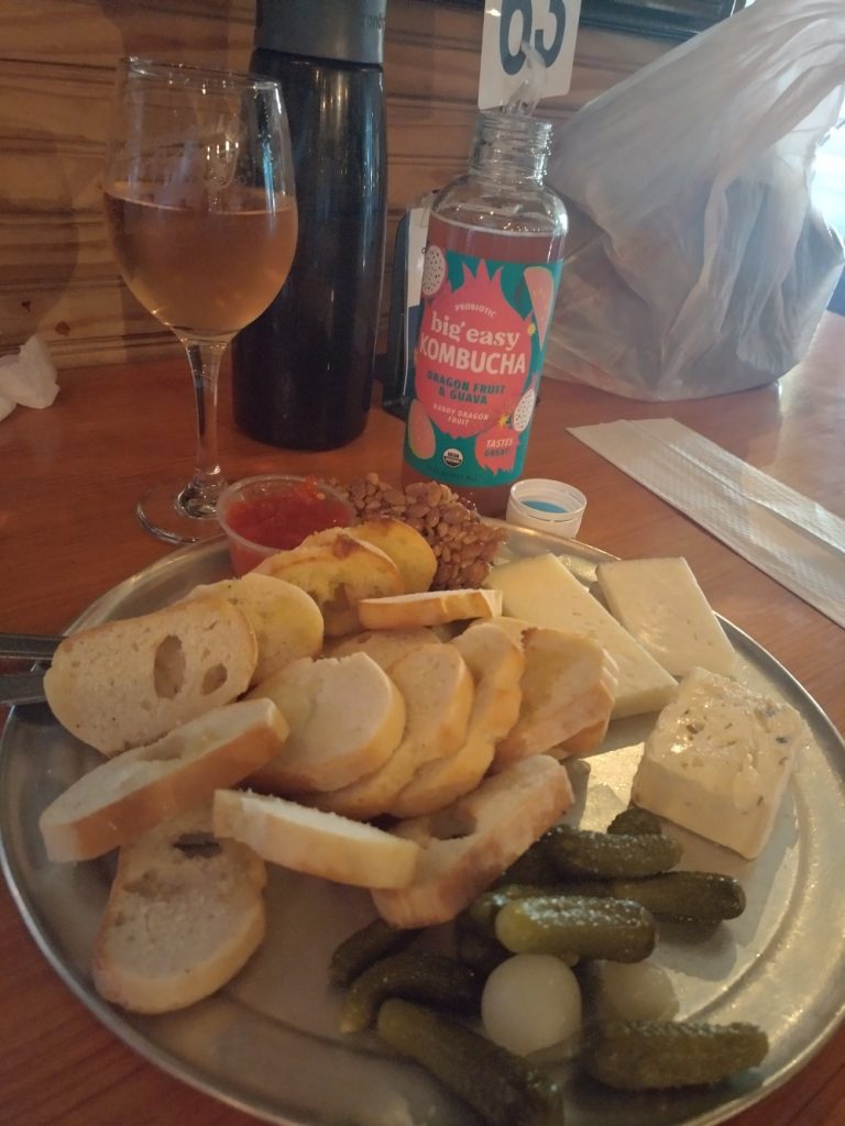 This tour ends mid-afternoon, enough time to go out to dinner. We recommend Bacchanal Wine. From where the tour ends, we took a bus down Saint Claude Avenue, and walked a few blocks. It has a lovely small plate menu and beer and wine list. In the market, you build your own meat and cheese plate. They do the rest and deliver it to your table. Much of the seating is outside, and music plays on a stage often. It is a great place to hang out.